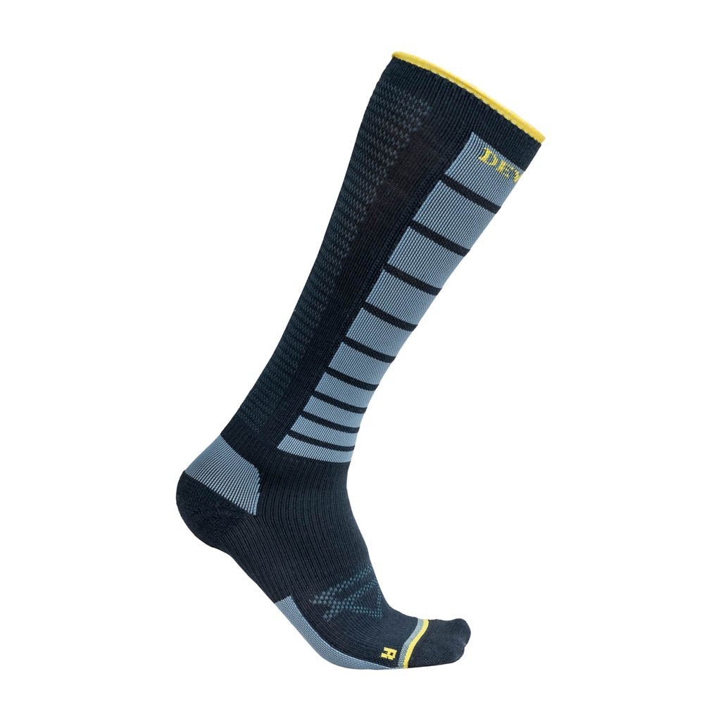 The optimum running sock. Sports compression enhances performance both during and after training, due to increased blood circulation that also increases oxygen supply. Reinforced section on the shin protects from briers and thorns when you run in the woods. • Mesh panel on the calf for ventilation. • Anatomically correct design for left and right feet gives an optimum fit and minimises the risk of blisters. • Stabilising section around the ankle. 49% Polyamide - Nylon / 33% Wool (Merino) / 10% Silk / 7% Elastane / 1% Silicone